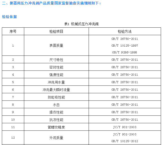 涉及的卫浴产品质量国家监督抽查检验依据如下: