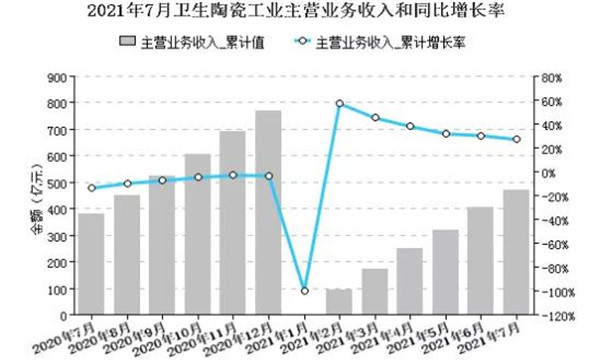 卫浴头条网讯卫浴头条网从国家统计局和中国建材联合会了解到,1-7 月,规模以上卫生陶瓷工业主营业务收入累计 471.27 亿元,比上年同期增长27.0%。
