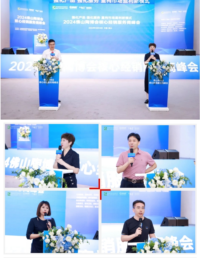 10月18日下午,由中国建筑材料流通协会陶瓷卫浴经销商专委会、佛山中国陶瓷城集团主办,佛山陶博会组委会、中陶家居网、卫浴头条网承办的“2024佛山陶博会核心经销服务商峰会”在中国陶瓷卫浴总部陶瓷剧场三楼多功能会议厅举行。全国50多位地级市以上年销售额千万级的瓷砖、卫浴大商齐聚佛山,共襄行业盛事,共谋行业发展新路径!