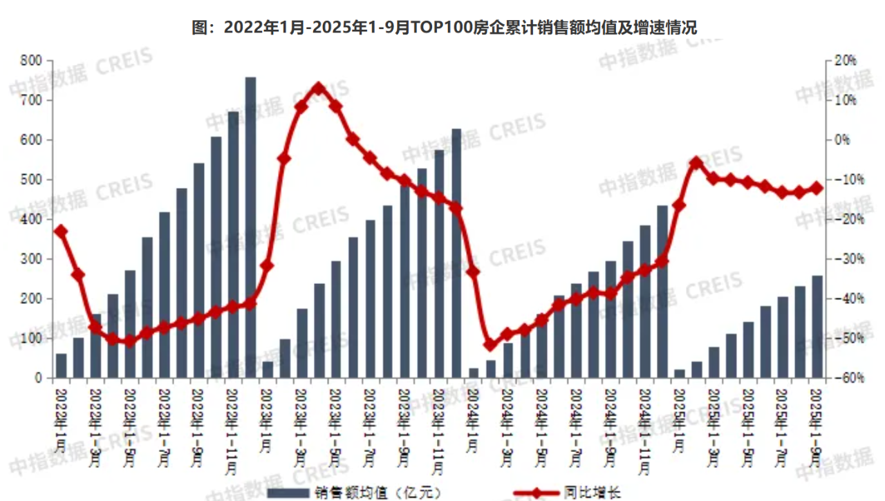 1-9月TOP100房企销售同比下降12.2%