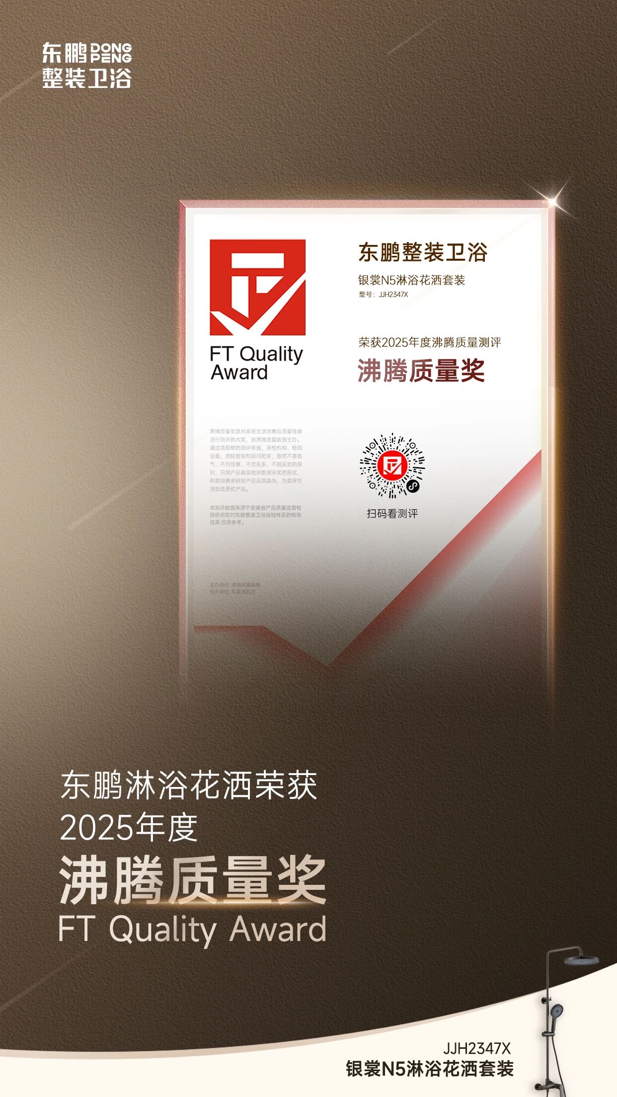 近日,备受行业瞩目的2025年度沸腾质量奖测评结果正式揭晓。东鹏整装卫浴凭借卓越的产品品质与过硬的技术实力,一举斩获两项最高荣誉“沸腾质量金奖”以及一项“沸腾质量奖”。本次送检的三款产品,均在严格的检测中表现优异,多项指标超越测评标准要求,展现了品牌强大的技术底蕴。