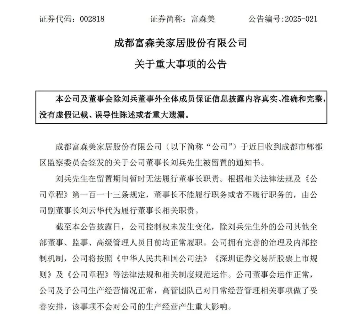 与此同时,头部卖场企业管理层频繁“出事”。4月,居然智家董事长汪林朋被留置调查,后虽解除留置,但随后突发去世;5月,红星美凯龙创始人车建兴被立案调查并留置,后辞去总经理职务;7月,富森美董事长刘兵被留置。密集发生的高管风险事件,进一步加剧了市场对家居卖场经营与合规风险的担忧。
