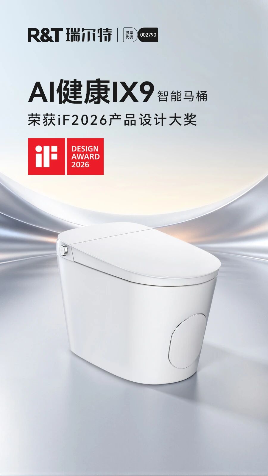 近日,2026年度德国iF设计奖获奖名单揭晓,R&T瑞尔特AI健康马桶IX9、无界系列壁挂智能马桶、无界系列壁挂轻智能马桶,凭借卓越的设计与创新技术,从全球数万件参赛作品中脱颖而出,斩获三项iF设计大奖。