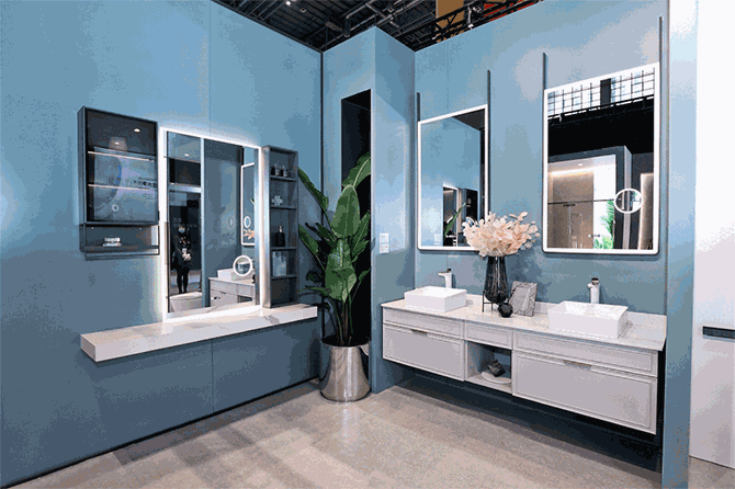 通过整合产品实物、多媒体技术、互动装置等多元化的布展方式,恒洁于现场打造出了兼具专业性与趣味性的沉浸式观展空间。同时,不同风格的定制卫浴套间,亦为观众们呈现了不同风格、不同场景的卫浴产品解决方案。
