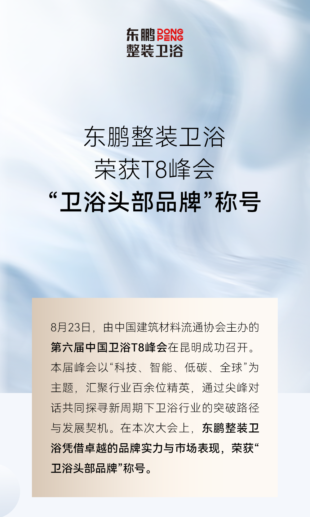 > 实力加冕|东鹏整装卫浴荣获T8峰会“卫浴头部品牌”称号