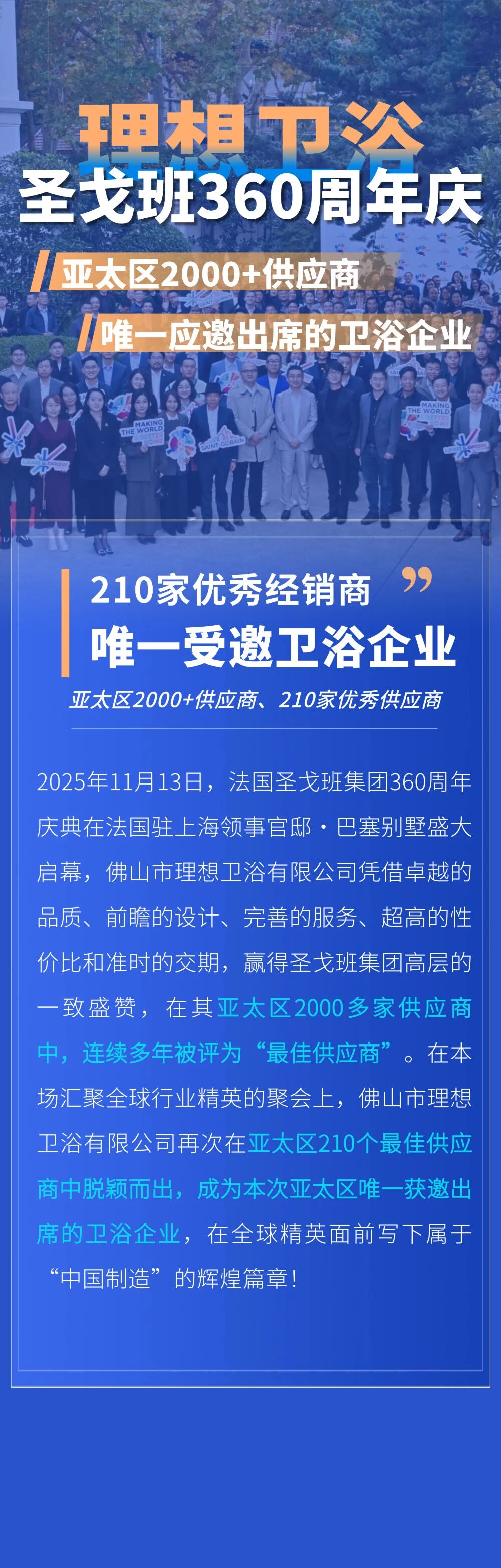 圣戈班360周年庆:理想卫浴从亚太区2000+供应商中脱颖而出,成唯一应邀出席卫浴企业!
