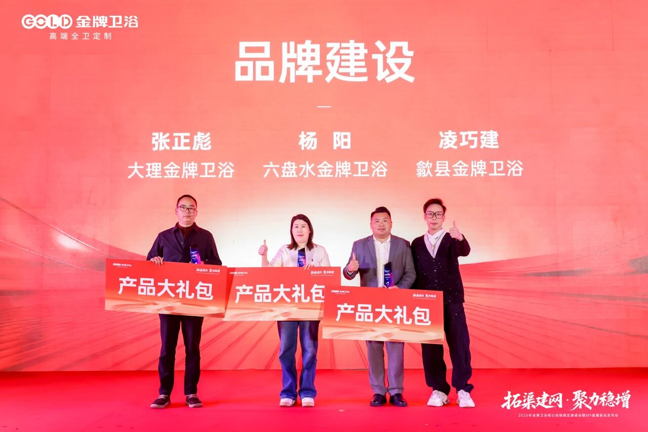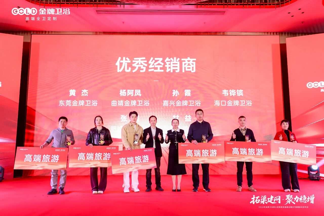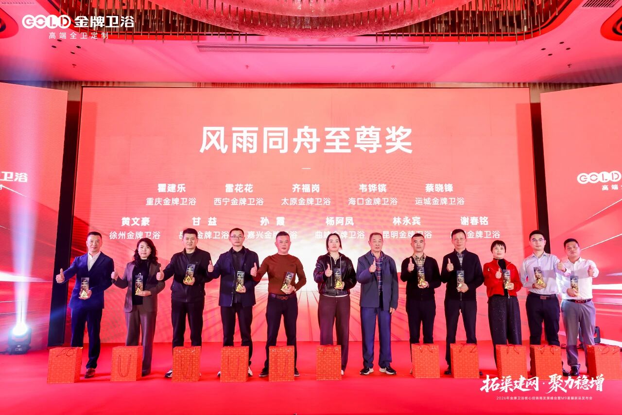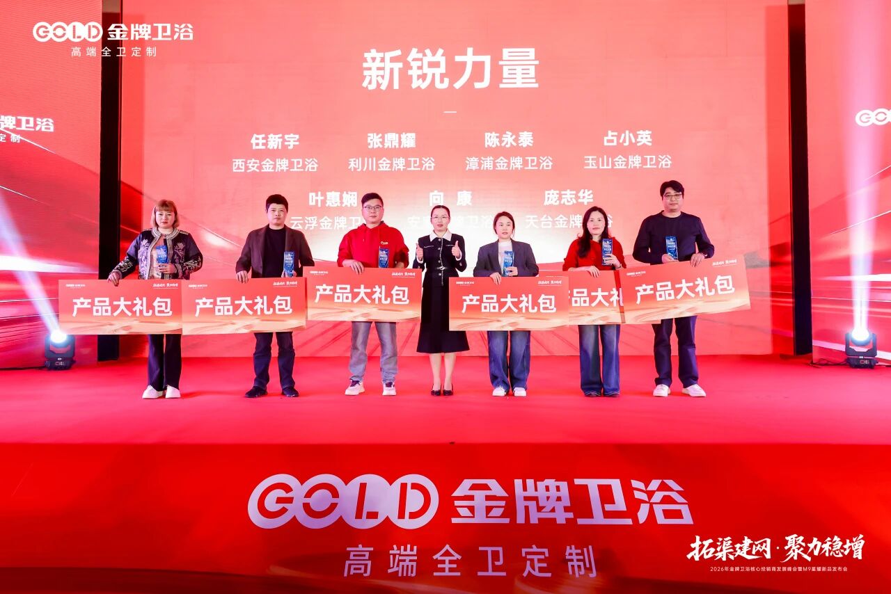 蓝图已绘就,奋进正当时。 2026年,金牌卫浴将坚定战略定力,携手全体经销商及合作伙伴,在全渠道开拓与高质量增长的赛道上全力进取。以“拓渠建网”为抓手,以“聚力稳增”为目标,共同奔赴属于金牌卫浴的星辰大海!
