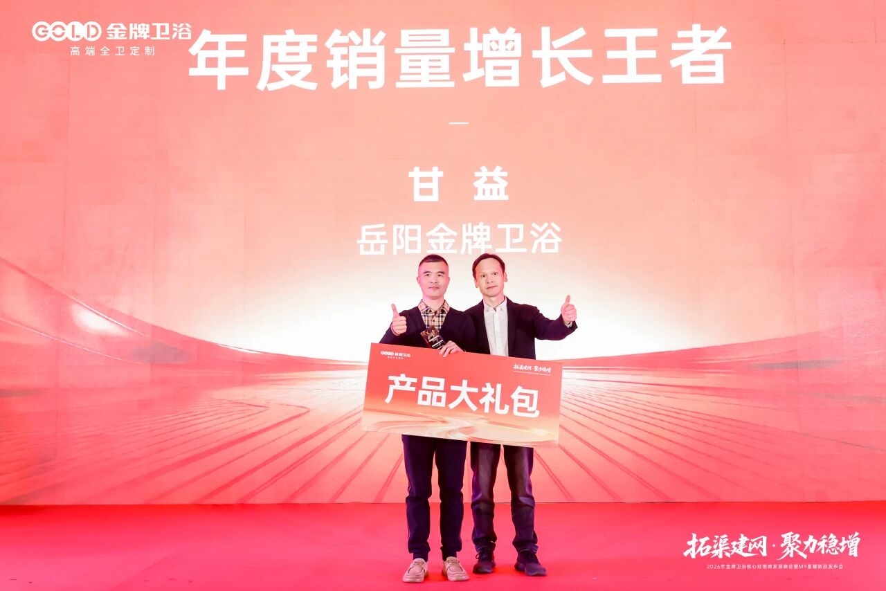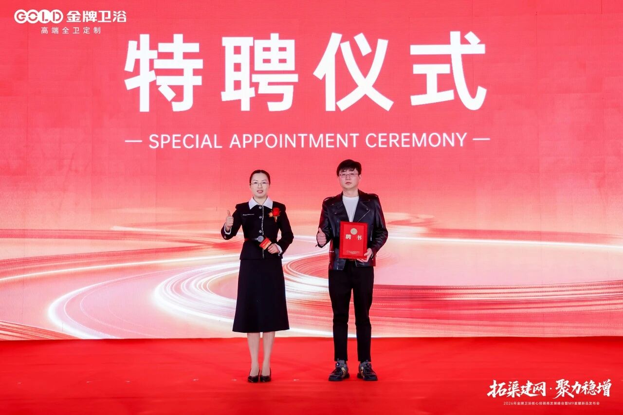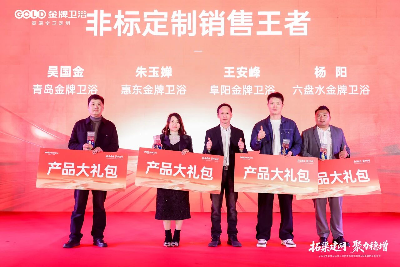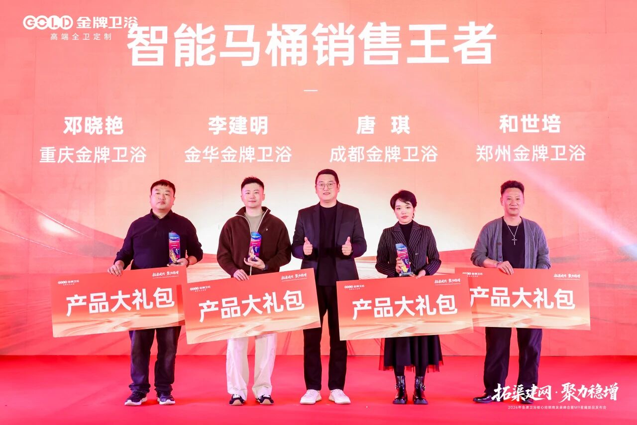 蓝图已绘就,奋进正当时。 2026年,金牌卫浴将坚定战略定力,携手全体经销商及合作伙伴,在全渠道开拓与高质量增长的赛道上全力进取。以“拓渠建网”为抓手,以“聚力稳增”为目标,共同奔赴属于金牌卫浴的星辰大海!