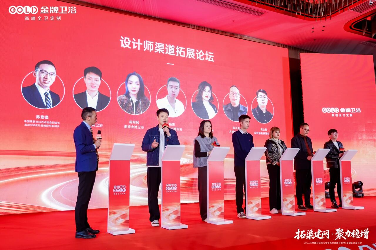 1月16日,“拓渠建网·聚力稳增”金牌卫浴2026年核心经销商发展峰会暨M9星耀新品发布会在佛山盛大召开。金牌卫浴高层领导、行业专家、主流媒体以及来自全国各地的核心经销商精英齐聚一堂,共绘高质量发展新蓝图,开启2026品牌腾飞新征程。